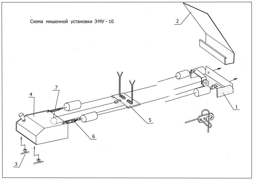 9. Размотать шнур каретки мишени. Шнур закрепить крюком за