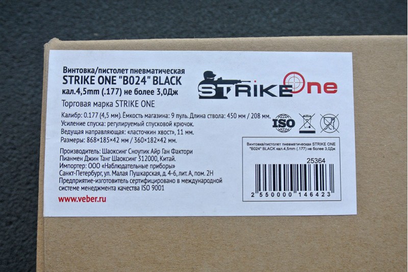 PCP пистолет-винтовка Strike One B024 Black до 7,5 дж (тюнинг Нева-Таргет)