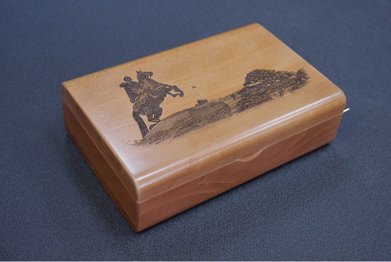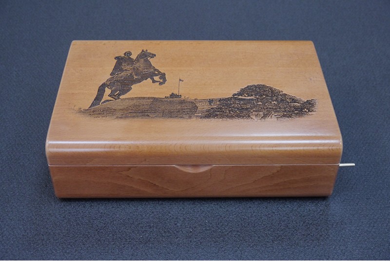 Шкатулка подарочная к пистолету с секретным магнитным замком, дерево - бук лакированый. Гравировка- Медный всадник.