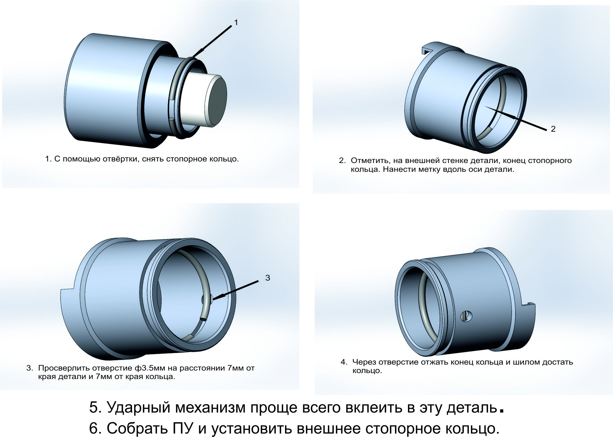 Для снятия старого ударника потребуется просверлить отверстие: