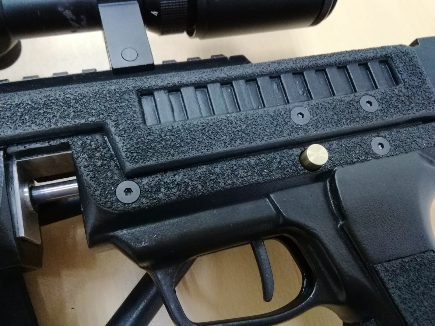 1. Заправка производится штатным заправочным штуцером, через заправочный порт, скрытый под передней крышкой или корпусом саунд-модератора.